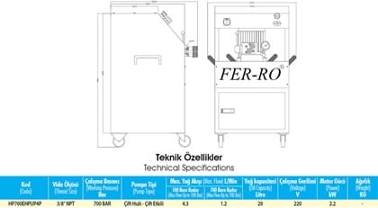 HP700EHP Series 700 Bar Electric High Pressure Power Unit -Manuel Portable- radial piston double speed pump offers double and single acting usage options. With the help of the pressure safety on it, it provides maximum security. It is an electrical power unit with 0-700 bar pressure