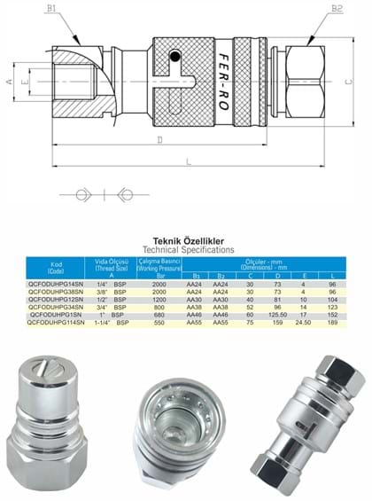 QCFODU series FER-RO Own Special Design Ultra High Pressure Quick Couplings are specailly designed for extreme high pressure applications.
