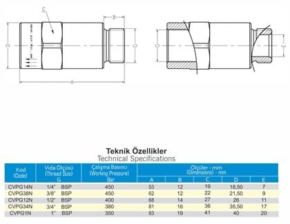 Opening pressure of CVP Series Hydraulic Check Valves is 0,5 Bar. Upon request, 6-8
