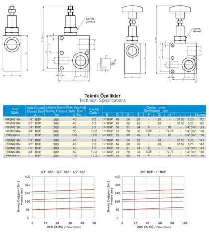 PR Series Hydraulic Pressure Relief Valves act as a part of the control systems in hydraulic systems. When the system gets over loaded, the Pressure Relief Valve opens and flow comes from the pump is leaded directly into the hydraulic reservoir.