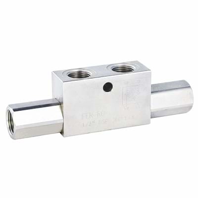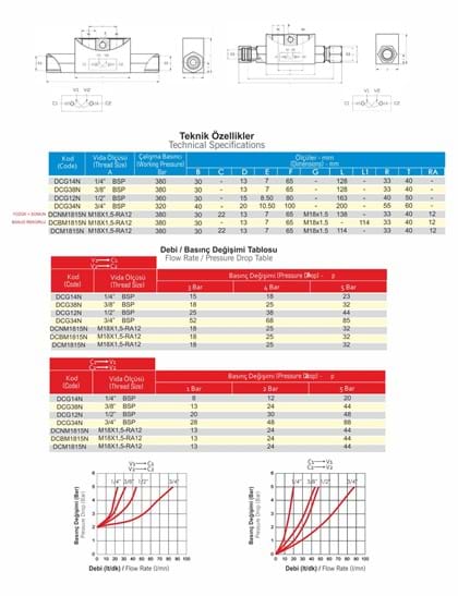 Although they are in the same range with inline check valves, DC Series Hydraulic Double Pilot Operated Check Valves are differnet in that they permit the valve to open normally closed direction or they provide a positive shut-off by means of a specific pilot pressure signal.