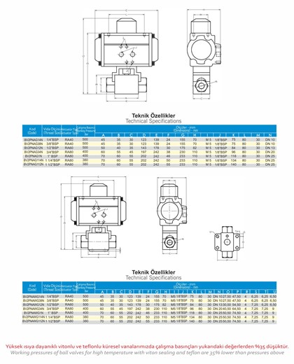 BV2PNA Series Double acting Pneumatic Actuator Hydraulic 2-Way Ball Valves are used to either shut-off or open of flow passage and their easy operation provides unrestricted flow. Due to their volumetric structure they work rapidly and efficiently, and prevent cavitation.