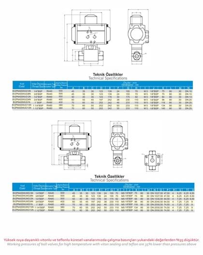 BV2PNA Series Double acting Pneumatic Actuator Hydraulic 2-Way Stainless Steel Ball Valves (Special for water and chemical fluid flow) are used to either shut-off or open of flow passage and their easy operation provides unrestricted flow. Due to their volumetric structure they work rapidly and efficiently, and prevent cavitation.