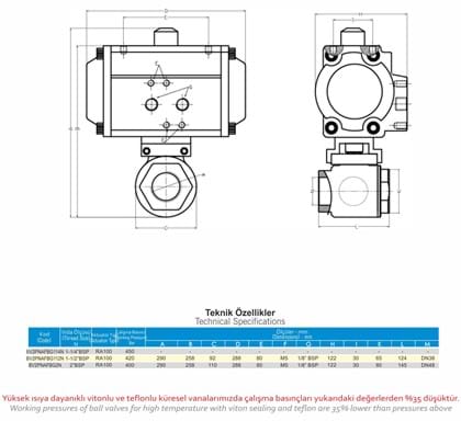 BV2PNAFB Series Double Acting Pneumatic Hydraulic 2-Way Full Bore Ball Valves are used to either shut-off or open of flow passage and their easy operation provides unrestricted flow. Due to their volumetric structure they work rapidly and efficiently, and prevent cavitation.