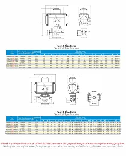 BV3PNA Series Double Acting Pneumatic Actuator Hydraulic 3-Way Stainless Steel Ball Valves are used to either shut-off or open of flow passage and their easy operation provides unrestricted flow. Due to their volumetric structure they work rapidly and efficiently, and prevent cavitation.