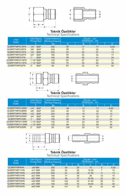 Uç malzemesi pirinç olan QCBRFFMP serisi Endüstriyel Çok Amaçlı Kullanım Otomatik Rekorlar başta su olmak üzere birçok kimyasal sıvının geçebilmesine olanak vermektedir.