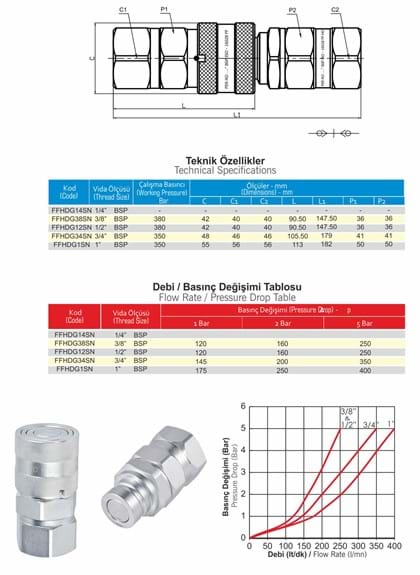 Erkek uçlar ısıl işlem uygulanarak sertleştirilmiştir Yüzük üzerindeki manuel kilitleme mekanizması istek dışı bağlantı ve ayrılmalara karşı emniyet sağlar.