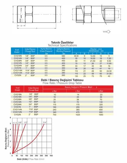 | Açma Basıncı | 0,5 Bar (Özel hallerde isteğe bağlı 6-8 Bar açma basıncı opsiyonu) |