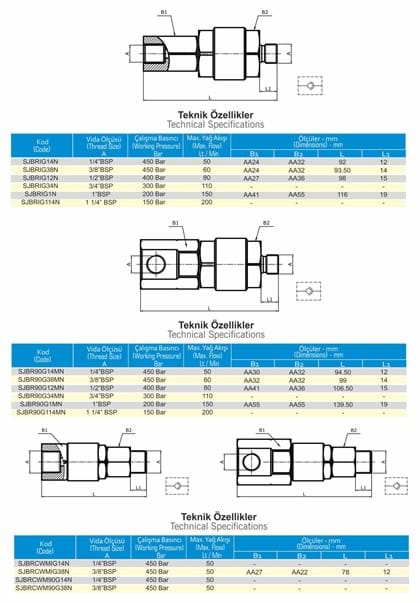 SJBR Serisi Hidrolik Pirinç Döner Bağlantı Rekorları, hızlı ve sürekli dönüşler için uygun olmayıp, yüksek basınç altındaki yavaş dönüşler için uygundurlar.
