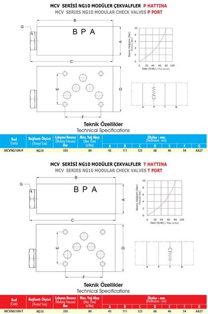 MCV SERİSİ NG10 MODÜLER ÇEKVALFLER (P HATTINA - T HATTINA)