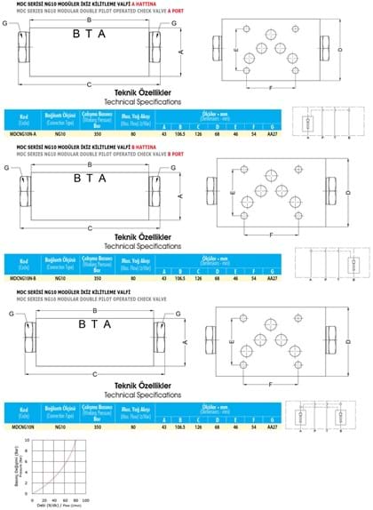 NG10 Modüler ikiz kilitleme valfleri pleyt üzerine bağlantı ile diğer valfler uyumlu çalışmaktadır. Montaj yüzeyi NG10’dur. NG10 Modüler ikiz kilitleme valfleri mobil ve diğer sanayi alanlarında geniş kapsamda kullanılmaktadır.