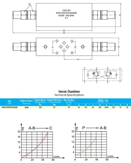NG06 Modüler Yük tutma valfleri içten pilot uyarılı olup haricen pilot