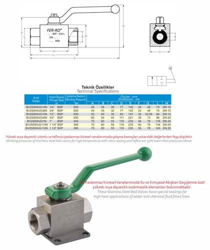 Komple olarak AISI 316-L paslanmaz çelikten imal edilen BV2SS Serisi Hidrolik 2 Yollu AISI 316-L Paslanmaz Küresel Vanalar, her türlü kimyasal ve korozyona karşı mükemmel dirence sahiptir.