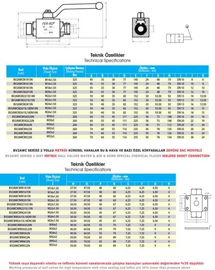 BV2AWC SERİSİ 2 YOLLU METRİK KÜRESEL VANALAR (SU & HAVA VE BAZI ÖZEL KİMYASALLAR İÇİN)