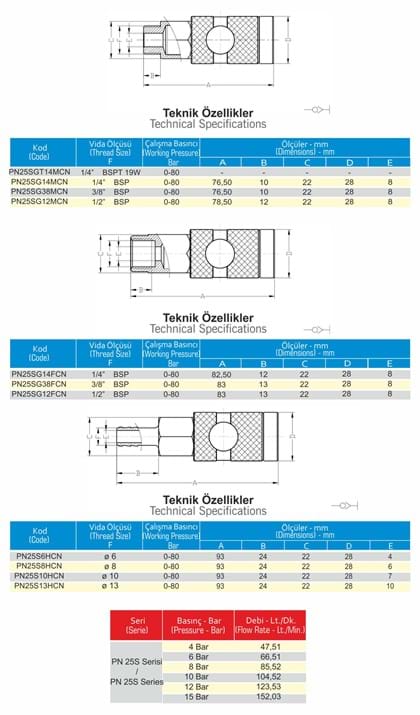 PN25S Serisi Pnömatik Otomatik Rekorlar, sağlam ve dayanıklı yapıları, yüksek hava akım kapasiteleri ve kullanım kolaylığı sayesinde tüm sanayide basınçlı hava hatlarında güvenle kullanılmaktadır. Emniyetli özelliği ise üzerindeki butona 1. basmada hava akışını keser