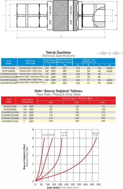 STHF Serisi Hidrolik Yüksek Debili Yüksek Basınç Vidalı Rekorlar, yüksek debili akışkanların ve hidrolik şokların verebileceği zararlara karşı mükemmel dayanıklılıkları ve vidalı bağlantı sistemleri sayesinde vibrasyonlu yüksek basınç uygulamalarında güvenle kullanılmaktadır.